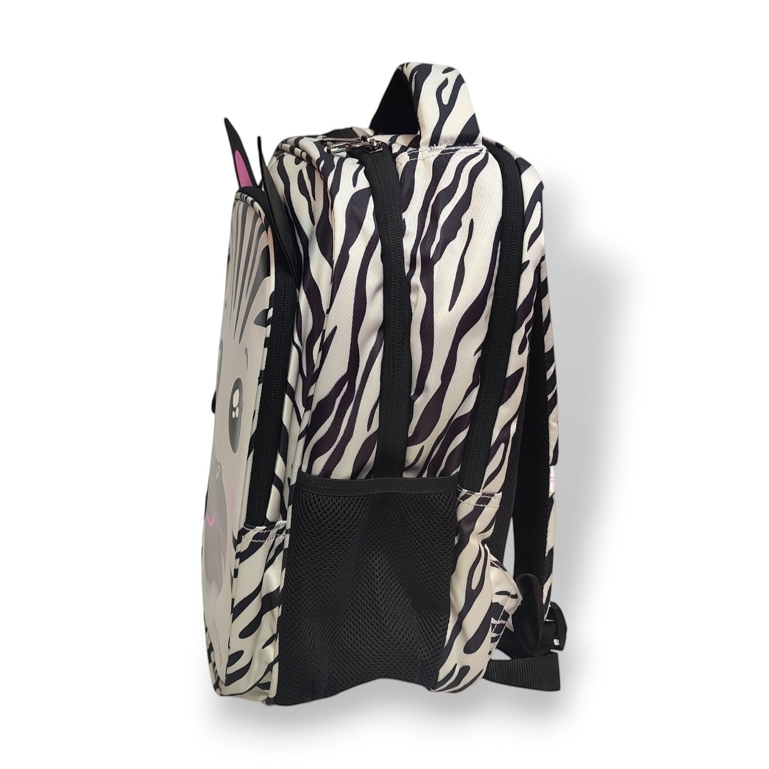 🔹 ADORABLE 3D ZEBRA FACE & EARS — The full front panel features a kawaii-style